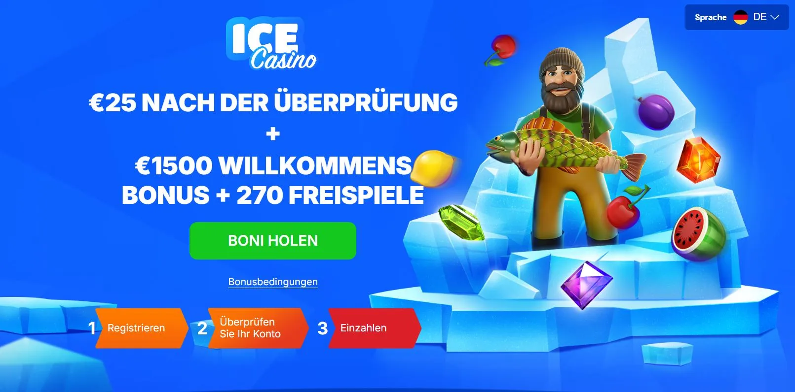 Mit dem 25 €-Bonus von ICE Casino können Sie Ihre Lieblingsspiele risikofrei ausprobieren - ohne Ihr eigenes Geld einzusetzen. Und ja, Sie können echtes Geld gewinnen!